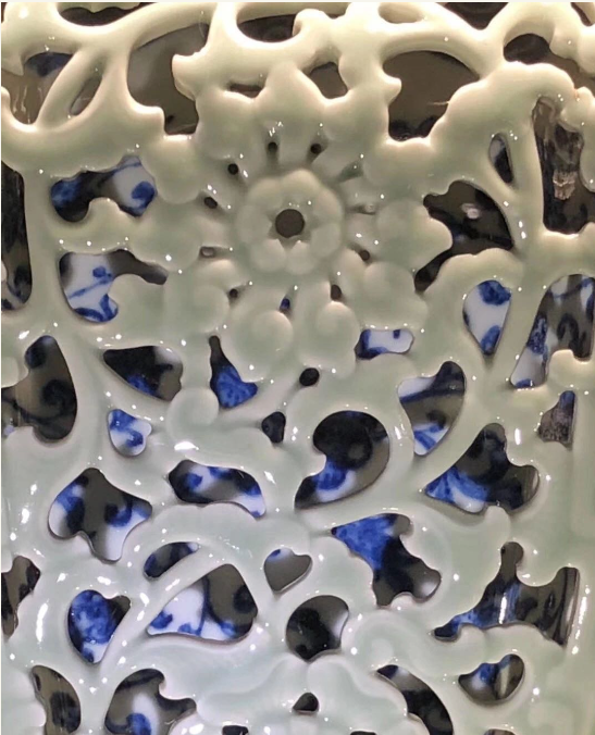 最絕的是「鏤空纏枝花卉」工藝:工匠們以刀代筆,在瓶身精心雕刻出纏枝花卉紋,花枝蜿蜒,花朵飽滿,每一處鏤空都精準得彷彿上帝親手裁剪,既保留了瓷瓶的完整性,又營造出「花影婆娑」的通透感。更妙的是「套瓶」設計 —— 外層鏤空,內層還有一瓶,兩層呼應,宛如「瓷中藏瓷」,把東方人的「含蓄浪漫」玩到了極致。