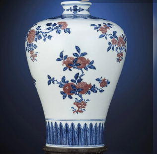 在 2019 年北京保利春拍的「古董珍玩」專場中,一件清乾隆 青花釉裡紅折枝花果紋梅瓶(與文中梅瓶風格、工藝高度一致),最終以1265 萬元人民幣成交,震驚收藏界!