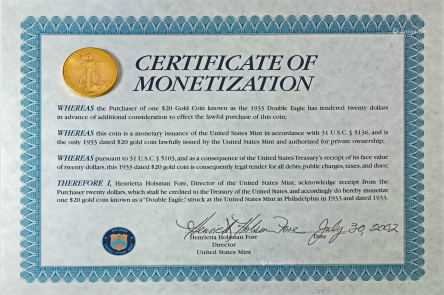 2002 年,這枚歷經坎坷的 1933 年雙鷹金幣終於迎來了命運的高光時刻。在紐約蘇富比拍賣行舉辦的一場特別拍賣會上,它作為壓軸拍品登場。