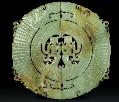 汉代青白玉双璜合璧由于存世量稀少,且具有极高的历史与艺术价值,在拍卖市场上一直备受追捧。