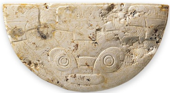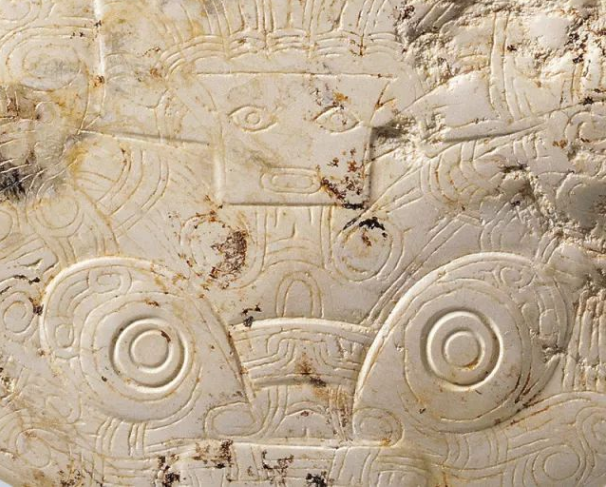 獸面紋則以橢圓大眼、拱形鼻梁及凸橫棱口為基本組合,因而可稱之為簡化神人獸面紋。值得注意的是,大部分良渚文化玉器神人獸面紋均是以此類簡化形式出現。