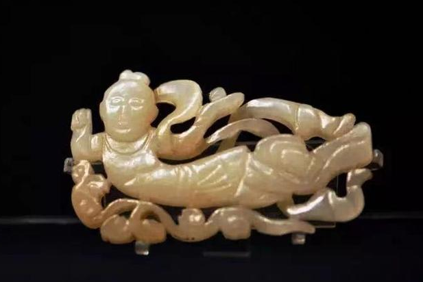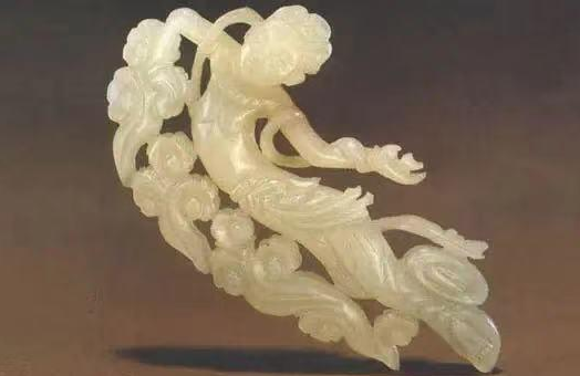 天津博物馆也藏有一件玉飞天,身形整体是侧面的,其他方面的相似度也比较高。