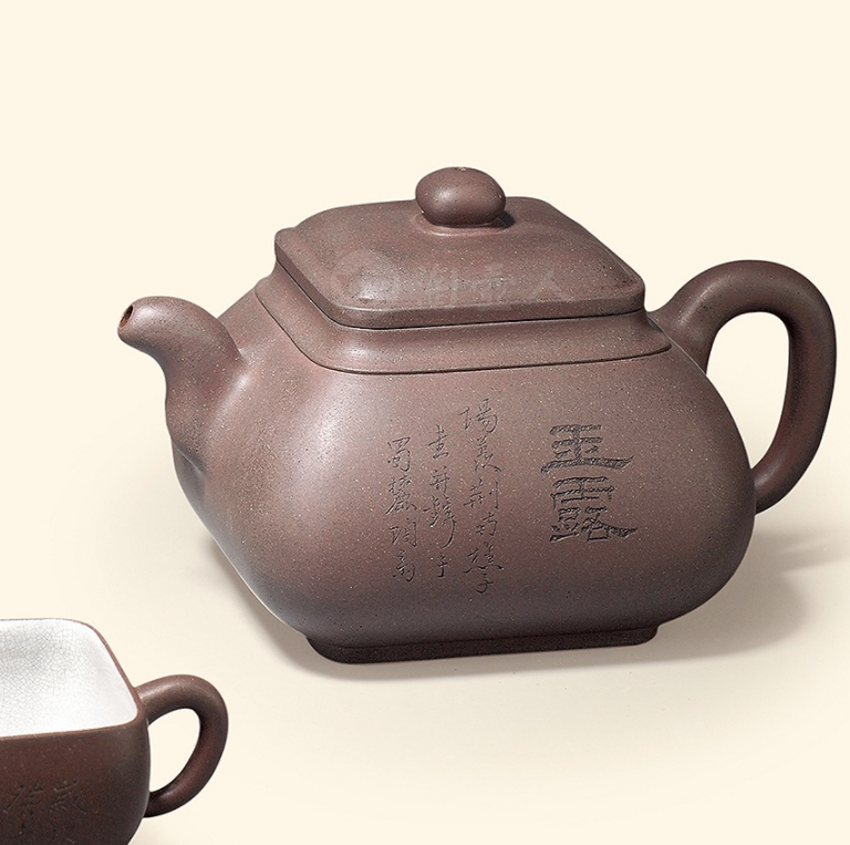 据说,这套茶具的诗文镌刻,是顾老特邀当时的书法名家合作完成,每一笔、每一划都经过反复斟酌,力求字与器、文与茶的完美融合。如今,当我们用这套茶具泡茶时,看着茶汤在紫泥杯中缓缓流转,读着壶身上的诗意文字,仿佛能跨越时空,与顾老及那位书法名家隔空对话,感受那份流淌在器物中的文化底蕴。