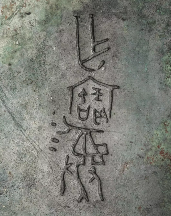 器内底中央铸有 “作宝彝” 三字铭文,竖排书写,字径约 2.5 厘米,字体为西周中期典型的 “波磔体”——“作” 字左半部分笔画舒展,右半部分紧凑;“宝” 字上部 “宀” 呈 “覆瓦形”,下部 “贝” 字笔画清晰;“彝” 字上部 “米” 字形结构规整,下部 “糸” 字线条流畅。三字间距均匀,布局对称,既体现西周人对 “秩序” 的追求,又反映文字从 “象形” 向 “表意” 的演变。