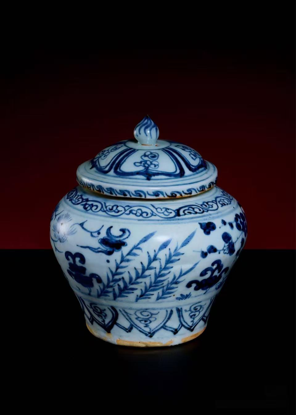 作為元代青花瓷器的代表作之一,此蓋罐更蘊含著深厚的歷史價值。元代青花打破了此前以青瓷、白瓷為主流的格局,以絢麗的色彩和豐富的紋樣開創了陶瓷藝術的新紀元。其钴料多採用進口「蘇麻離青」,发色濃艷中帶有鐵鏽斑,形成獨特的審美風格,後世難以復制。這件蓋罐無論是胎釉工藝、青花发色還是紋飾題材,都集中體現了元代青花的最高水準,是研究元代陶瓷史、文化史的重要實物資料。