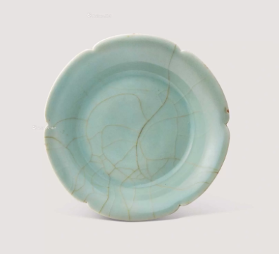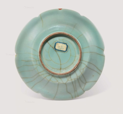 釉色之妙,可謂「千峰翠色」的真實寫照。南宋龍泉窯的匠師們突破性地掌握了「多次施釉」技法,使得這件葵口盤的釉層肥厚瑩潤,宛如凝脂。釉色呈現出深邃而透亮的粉青之色,近看如嫩葉初展,遠觀似碧水微波,在光線的映照下,釉面閃爍著細膩的冰裂紋,紋路自然隨意,沒有刻意雕琢的痕跡,卻形成了獨特的藝術韻味。這種「冰裂纹」並非瑕疵,而是時間與火候共同鑄就的驚喜,每一道裂紋都各不相同,猶如大自然的指紋,賦予了器物獨一無二的生命力。