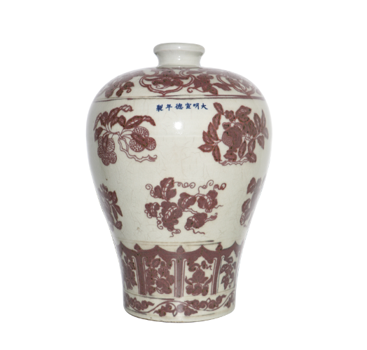 釉裏紅瓷器始燒於元代,因其燒制工藝復雜,對窯溫、氣氛要求極高,故歷代產量稀少,尤為珍貴。乾隆時期是清代制瓷業的鼎盛階段,禦窯廠集全國頂尖工匠,在繼承前代工藝的基礎上不斷創新,將釉裏紅瓷器的燒制技藝推向巔峰。這件青花釉裏紅纏枝花卉紋梅瓶不僅體現了乾隆年間制瓷技術的最高水平,更承載著深厚的歷史文化內涵,纏枝花卉紋象征著富貴綿延、生生不息,是中國傳統吉祥文化的重要載體,具有不可替代的藝術價值與收藏價值。